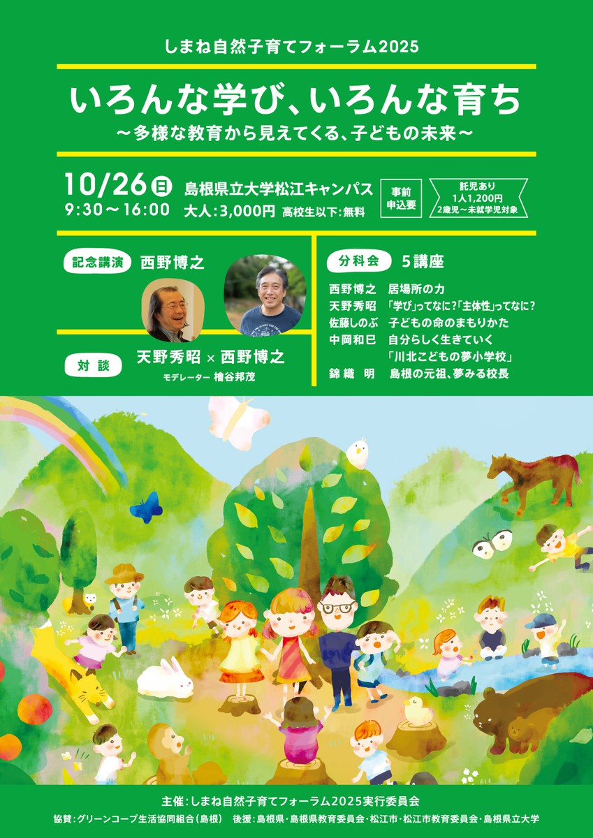2025年10月26日にしまね自然子育てネットワークのメンバーを中心にフォーラムを開催します。