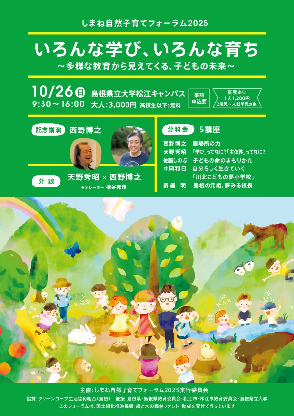 2025年10月26日にしまね自然子育てネットワークのメンバーを中心にフォーラムを開催します。