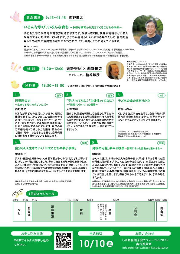 参加者どうしが体験や思いを共有し合い、子どもたちの未来をより豊かにするためのヒントを見つけていく場となることを願っています。